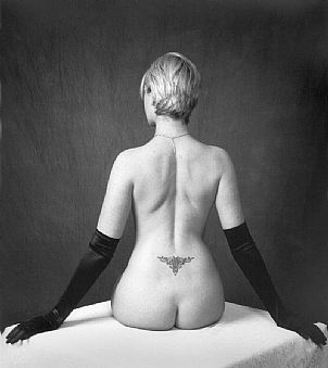 Slouching can make us look lazy and tired. This is not a great look when trying to inspire confidence in oneself with a potential boss, or client, or lover. Straightening the back automatically makes us look more alert and appear more active. We look and feel more confident, and this positive outlook can inspire us. Black gloves 21.3 by 24cm. (8.52′ x 9.6′) Hand-printed gelatin silver monochrome photograph by John Carmichael – more artworks , artist’s CV £ 180