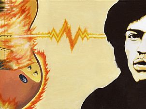 We all have idols. But we want them to remain idols. We don’t want to know about their hang-ups and insecurities, their nightmares and embarrassing failures. We want to hang them on the wall and worship at the altar of rock. We want to be lifted up by these angels of cool, up above street-level banality.If it’s nostalgia you’re after, we’ve got it in spades. You must check out Peter Gregory’s brilliant portrait of Jimi Hendrix or Brian Shepherd’s Bowie in Ground Control. For drawings try Pat Burke’s Jimi or Jim and Steve Whipp’s Madonna from her ’Erotica’ period. For cheap and cheerful pop iconography try Mike Stead’s two-tone classic Elvis or Madonna, Steven Barrat’s glitter portraits or Cathy Corker’s Beatles series. And if you haven’t seen his work before, have a look at Ed Chapman, our best-selling icon artist, who works in mosaic.