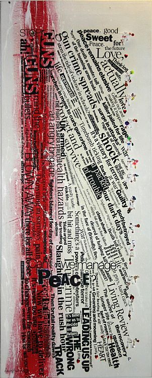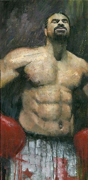 Acrylic and mixed media on canvas, with a gloss varnish
