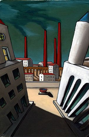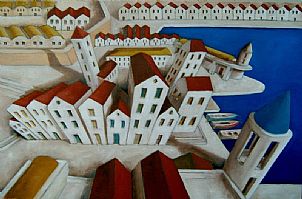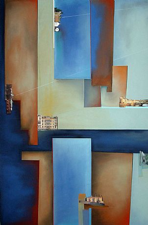 The best thing about the future is that it comes one day at a time. Abraham Lincoln.I never think of the future – it comes soon enough. Albert Einstein The future belongs to those who believe in the beauty of their dreams. Eleanor Roosevelt 100 years ago the Italian futurist Marinetti declared, “We want no part of it, the past…we the young and strong Futurists!” The futurist movement in Italy and Russia was a celebration of speed, technology and engineering, the revolutionary violence of the early 20th Century which swept away the old and worshipped at the altar of the new. In 2009/10 the hip young things looked back to their (great) grandparent’s era for inspiration from vintage clothing, flapper music and swingbeat, burlesque and cupcakes and the aesthetic of ’make do and mend’, but what will 2011 bring? A million minor revolutions and a whole load of new things to ’love’ and ’loathe’ because change is the only thing we can rely on. This week London Art presents contemporary visions of the future. Artists who depict the shape of things to come using the structures of the present like Lloyd Gill (’Multiverse2’) and Anna Creighton (’Cut Out City’); and artists whose work harks back to bold vision of the Futurists such as Carl Aman (’Love and Music’) and Cristina Ghelfi (’May’) and Constantine Lykiardopoulos (’Three Fourty Eight pm’) The future is ours! Happy New Year 2011 from London Art! Poros Kolossos by Lloyd GillCarl Aman Love and Music