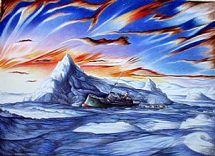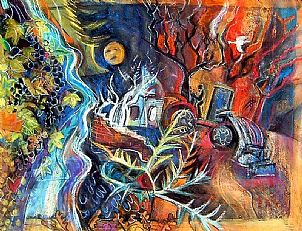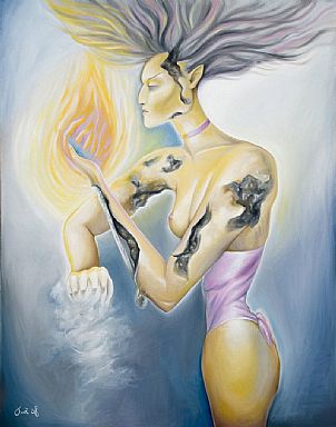 Fire and ice are the genesis of creation, not balmy sunshine and gentle showers. This week we celebrate the two extremes, one representing passion, the other emotional stasis. Starting at the chillier end, we stumbled upon the enigmatic Antarctic paintings of Vikky Furse ’Late evening Antarctica with iceberg’ and ’Arctic Iceberg LHS’; then Andrew Fitchett’s magical ’Silver Birch Trees’, Susan Czopor’s stunning ’Joy in Winter 5’ and David Taylor’s ’Ice reflection.’ It just got better…. For fire, we found a bubbling cauldron of delights: Paul Shiers’ lyrical ’Fire storm in Mist’, Michelle Gibb’s cosmic ’Golden Fire’, Sergej Hahonin’s surrealistic ’Fire on the Pust’. And just as it was all getting a bit intense, there was Malgorzata Korenkiewicz’ delightfully flirty silk painting ’Have you got fire?’