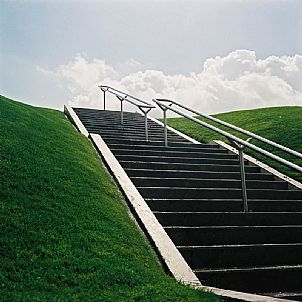 ’All games have morals; and the game of Snakes and Ladders captures, as no other activity can hope to do, the eternal truth that for every ladder you hope to climb, a snake is waiting just around the corner, and for every snake a ladder will compensate…’Simon RushdieThe simple well known game seems to speak the terms of life, the twists and turns and steady ascent to the desired goal. With it’s symmetrical and balanced structure the stairway connotes a steady journey, whilst the snake suggets deceit and vengefulness. Helmuth Osborne’s nature inspired photography demonstrates a playful imagination as the rock face appears to come alive with a winding serpant. In contrast, pieces such as ’Stairs’ by Catherine Graham radiates a feeling of calm as she focuses on the banal but beautiful line of the commonplace stairway.