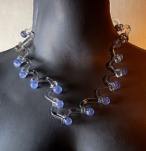 | | | | | | | | Clear and blue glass jointed necklace. Hook fastening. | | | 2 by 64cm. (0.8′ x 25.6′) | | | Borosilicate Glass | | | by Ruth Berenbaum – more artworks, artist’s CV | | | £ 260 | | | | | | | |