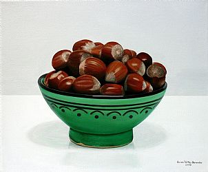 | | | | | | | | Hazelnuts in Moroccan Bowl | | | 29.7 by 21cm. (11.88′ x 8.4′) | | | Limited edition signed print. Image size 170 x 205mm on 210 x 297mm canvas textured white paper | | | by Lucas Witte-Vermeulen – more artworks, artist’s CV | | | £ 100 | | | | | | | |