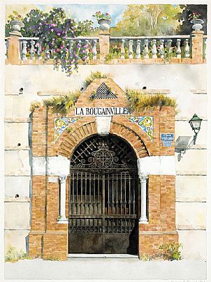 | | | | | | | | Bougainvillea Gateway Malaga | | | 44 by 59cm. (17.6′ x 23.6′) | | | Giclee print/watercolour on Hahnemuhle fine art paper | | | by Moira Clinch – more artworks, artist’s CV | | | £ 400 | | | | | | | |