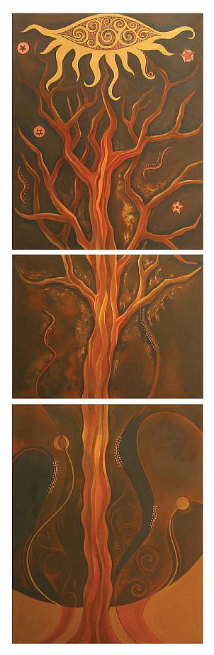 | | | | | | | | A Forever Searching Triptych | | | 51 by 125cm. (20.4′ x 50′) | | | Acrylics, Copper Leaf & Pen on Box Canvas x 3 | | | by Leanne Burford – more artworks, artist’s CV | | | £ 1000 | | | | | | | |