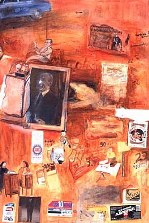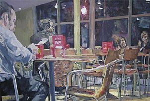 “You think you can see the light at the end of the tunnel, but it’s only some bugger with a torch bringing you more work.” David Brent Back to school, back to work! Whether you’re hard at it or taking a break to daydream… cast your eye over our inbox of artwork. Our artists know how to deliver the goods. Harry Dillon captures the Americana workscape; Rami Rimon transports us to a more localised equivalent in Haifa whilst Sue McMullen’s Northern GPO evokes the nostalgic bureauocracy of our Victorian architecture. The Worker is rendered in Fauvist style by Richard Feinman yet to Andrew Rollo he’s a prisoner tearing off his suit as antidote to the office blues. In our modern Babylon on the “Journey to the Midday Point” as Valeriy Kot puts it, Robert Brook’s photos give us pause to think, “Does God Exist?”