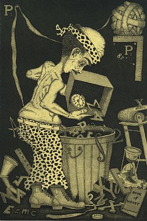 Artist John D. Gall’s intaglio pieces illustrate theoretical tableaux including “Useless Knowledge” but the imagined conversation between Socrates and Einstein is what preoccupies Evanthia Balla.