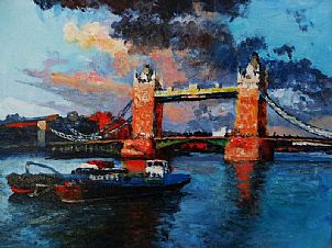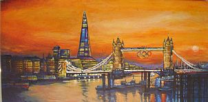 | | | | | | | | Tower Bridge with Olympic Rings | | | 152 by 76cm. (60.8′ x 30.4′) | | | oil on canvas | | | by Patricia Clements SWA – more artworks, artist’s CV | | | SOLD