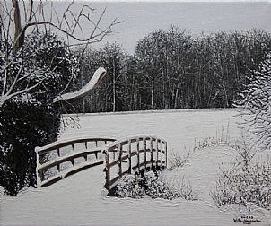 | | | | | | | | Winter Bridge, Colworth | | | 29.7 by 21cm. (11.88′ x 8.4′) | | | Limited edition signed print. Image size 170 x 205mm on 210 x 297mm canvas textured white paper | | | by Lucas Witte-Vermeulen – more artworks, artist’s CV | | | £ 100 | | | | | | | |