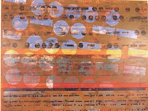 Geometry: measuring the earth.Throughout the centuries, people have felt the need to make marks upon their landscape, whether by lines drawn in the sand or by notches on stick or stone. Geometry remains an endless source of imagery for artists today: the composition of basic shape, line and form presented in endless combinations. Often constrained within the canvas support, cut off and isolated from wider life, they function as a focal point for deep concentration or extended meditation.For Lorna Wilson it mirrors what’s within, whilst Joe Ford perceives it externally on the metro. The Tate Sisters’ repeated forms have humorous connotations whilst William Dick’s painted structures are distilled from ancient Celtic references.