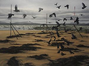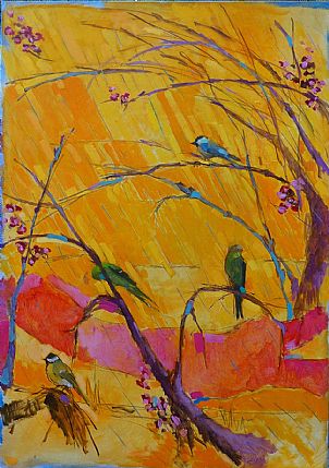 “A bird doesn’t sing because it has an answer, it sings because it has an answer.” – Maya Angelou.Birds are truly magnificent creatures; the ability to fly miles on end at will is something all humans must envy. Some migration birds will travel hundreds of miles across countries and continents with no rest. With a magical array of colours they offer artists an opportunity to paint using a selection of different bight, glowing colours, and give the artist an opportunity to really make use of poetic licence, using their imagination to bring the animals off the canvas. Vera Tataro uses a wonderful shade of blue in her artwork ‘In the parrots azure’, this brings the parrots in her artwork to life, giving them a wonderful glow and a fascinating look. Claire Naylor uses great attention to detail in her artworks, in ‘Lining up’ we see a bird ready to catch its dinner, with the reflections in the water and the great attention to detail we can imagine being there watching the bird.