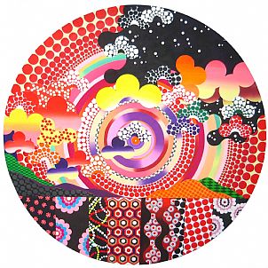“I am neither of the East not the West, no boundaries exist within my breast.” Rumi What is “East”? Londonart prides itself on being made up of artists from around the globe and geophysical “East” depends on where you are standing! However, the cultural significance of the all-pervasive thought and imagery from South Asia cannot be underestimated. Michael Coxon’s muted washes deliver sensitive depictions of rice fields and urban Tokyo youth whilst Tomomi Maruyama chooses to characterize Japanese street scenes with a unique colour palette of greys and luminescent brights. While Teresa Poole and Jay Walker opt for metallic surfaces and more traditional symbols of Geishas and Zen Buddhism, Daisuku Kawada composes day-glo, op art, pop art creations.