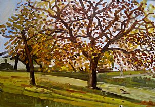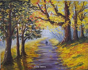 “Season of mists and mellow fruitfulness!” John Keats Autumn is something that has inspired poets, composers and visual artists since the mists of time…. How visual artists actually do it is almost alchemical. Landscapes are shrouded, shadows are lengthened and colours are saturated. Lucy Winterson uses pigment, sand and acrylic to arrive at her misty composites; Paul Lane paints digitally, Sturla Strand employs photography and Stella Dunkley & Diane Griffiths use acrylics. But in the main, the artists shown love to use oils for conjuring the gradations of colour that evoke the nostalgic haze that we associate with Autumn in the British Isles.